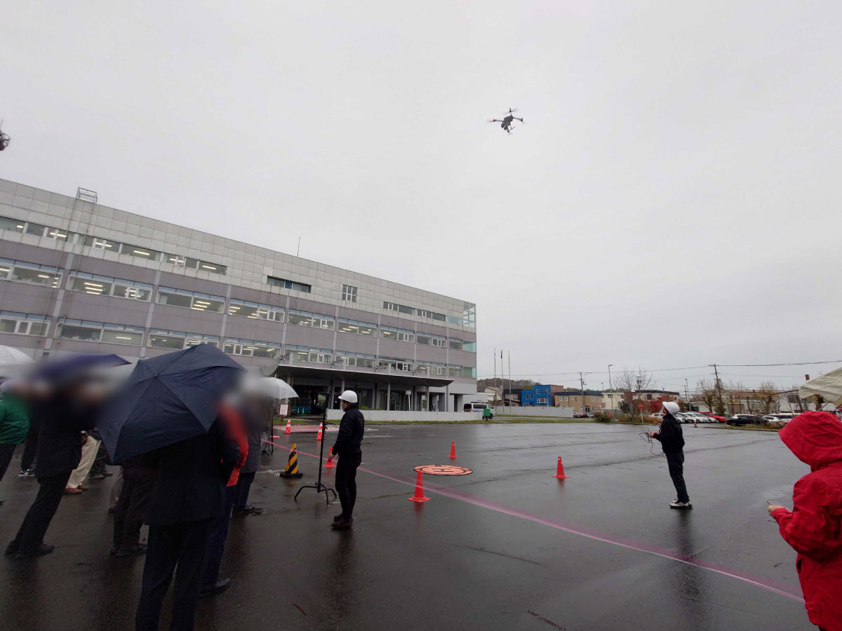 また、弊社スタッフがパイロットを務め、屋外にて実際の飛行デモンストレーションも実施し、災害・防災領域におけるドローン運用の具体的なイメージを共有させていただきました。