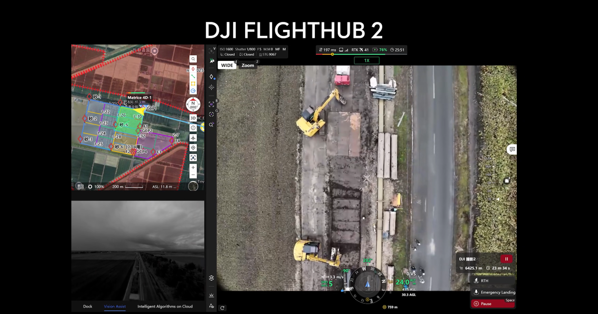 本取り組みでは、北海道内の圃場整備現場において DJI Dock 3 を活用した自動飛行・リモート運用が実施され、
