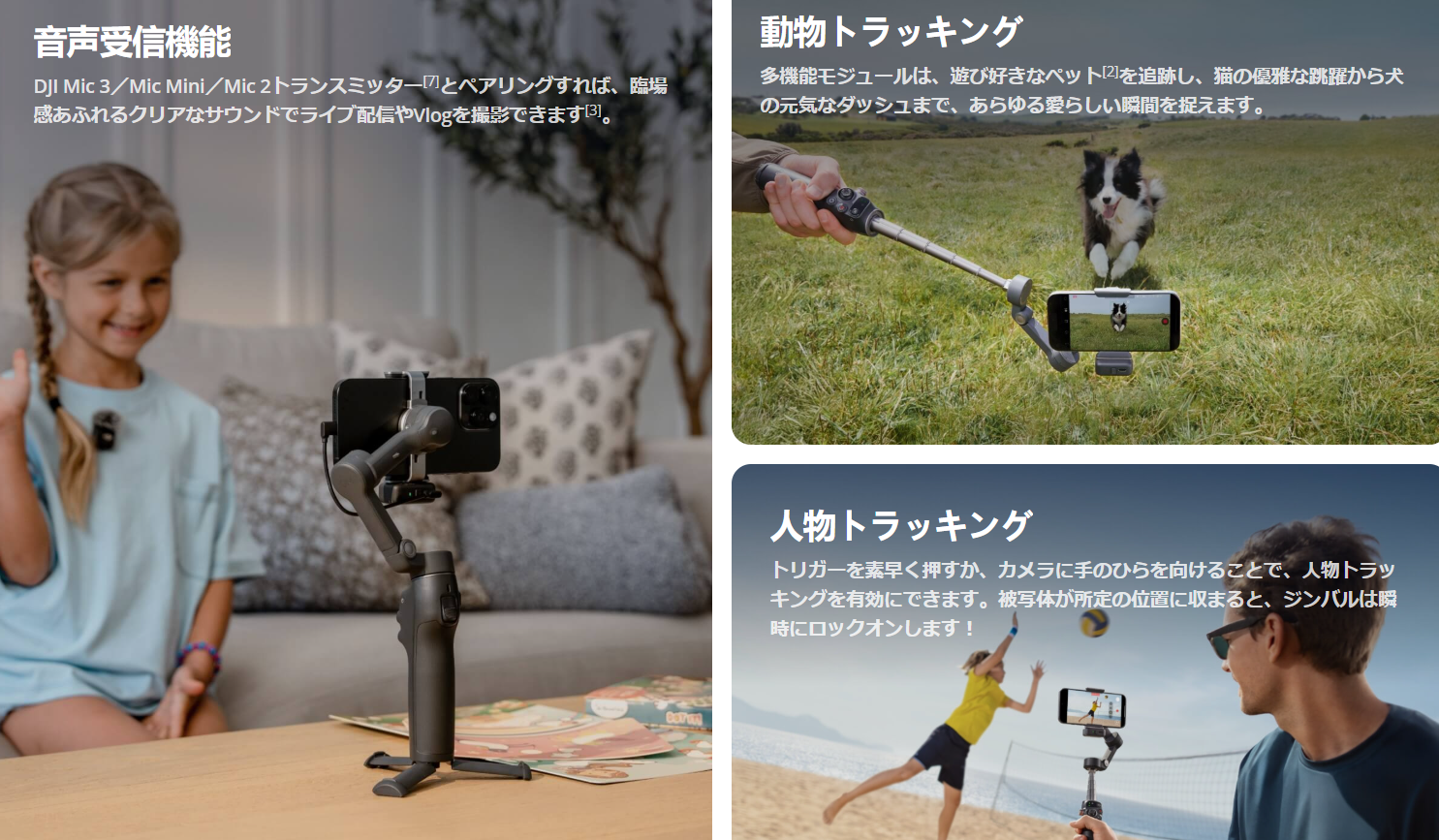 製品情報Osmo Mobile【初】360°パン(水平)回転に対応するパン軸を備えたスマートフォン用ジンバル【DJI Osmo Mobile 8】が発表されました。