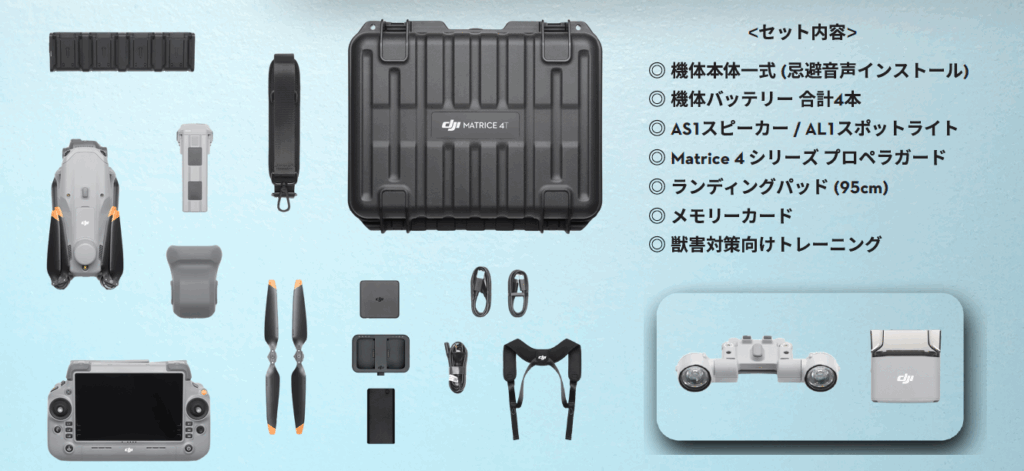 HELICAM株式会社では、獣害対策のためにDJI Matrice 4T 獣害対策セットを販売しています。