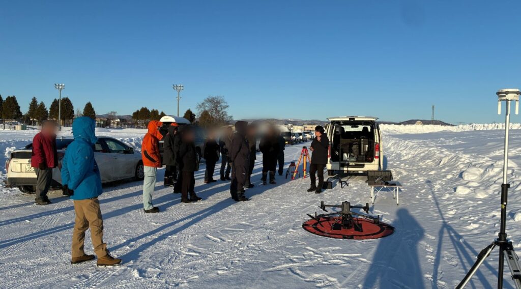 後半は、屋外会場に移動いただき、【フィールドモニター、D-RTK 3 多機能ステーション(基地局システム)※3、DJI Matrice 400(産業機ドローン)※2を使用しながら、L3を実際に飛行させ、マジかで最新技術を体験いただきました。